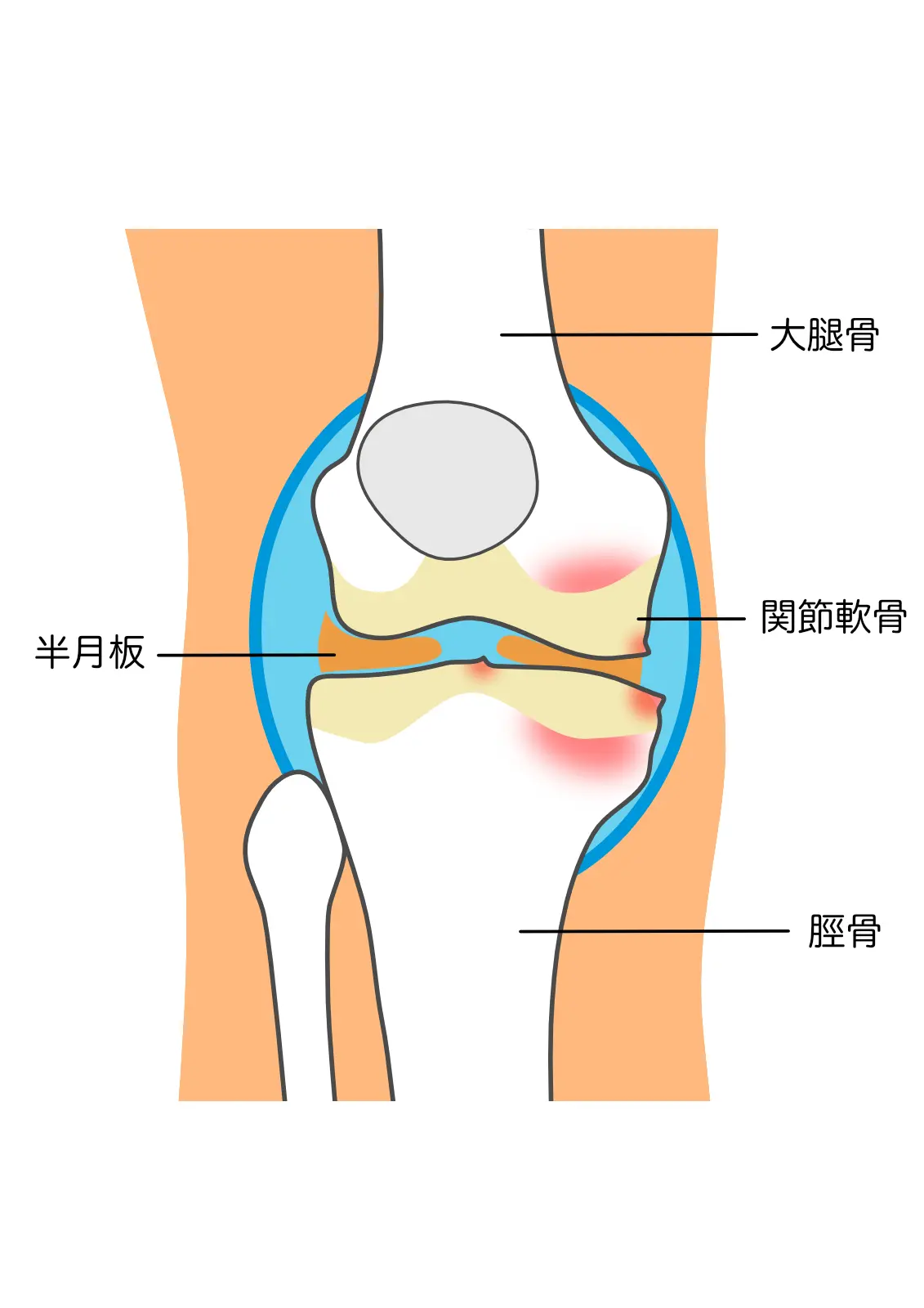 変形性膝関節症は、膝関節の軟骨が徐々にすり減っていくことにより、骨同士が直接擦れ合うようになる病気です。この擦れ合いにより、関節に炎症が起こり、痛みや腫れを引き起こします。関節の変形が進行することで、膝の可動域が制限され、日常生活に支障をきたすことがあります。