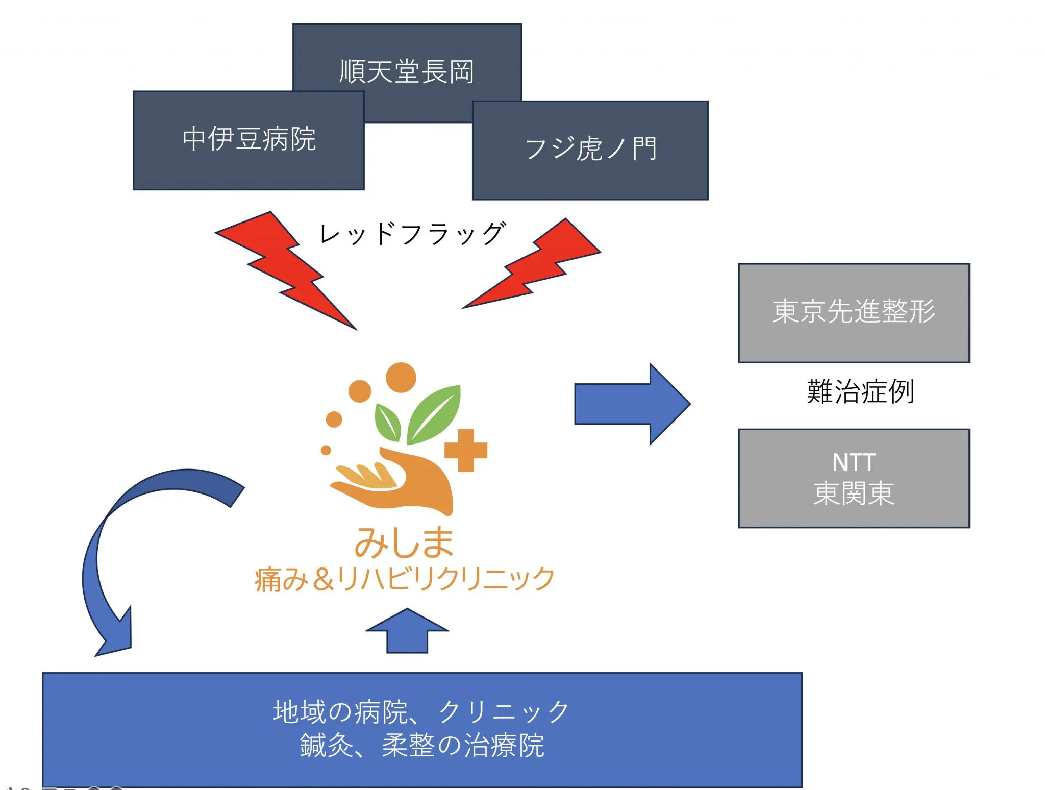 ご紹介を受けたり、当院に来院された患者様で保存治療以外。つまり即手術が必要な方に関してはすぐに近くの提携病院と連携を取れる環境にしています。さらに、何時例に関しては東京の数多くの1流の医師や病院にお繋ぎします。