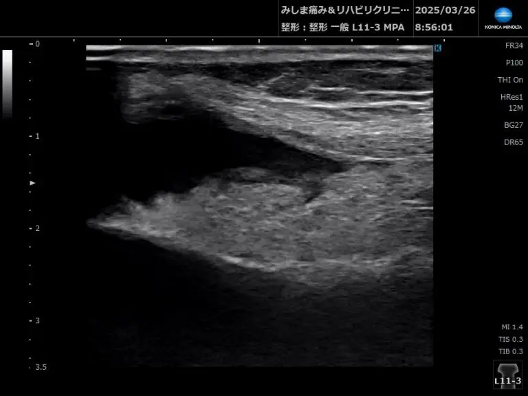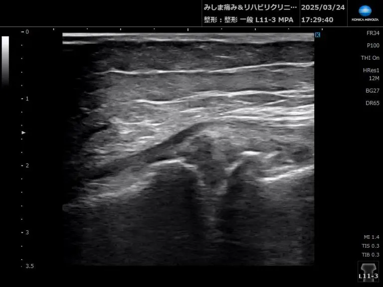 超音波はレントゲンでは見えないものがたくさん見えます。靭帯や筋肉の損傷などは間違いなく超音波で診断すべきです。そちらはまた別の機会に。